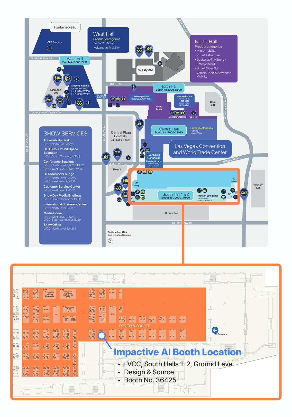 Our booth is located inside the Design & Source section on the Ground Level of South Hall. If you are coming from the Central Hall, you may use the connecting passageway. Visitors using the Vegas Loop can reach us quickly by exiting at the South Hall stop and entering through the S2 lobby.