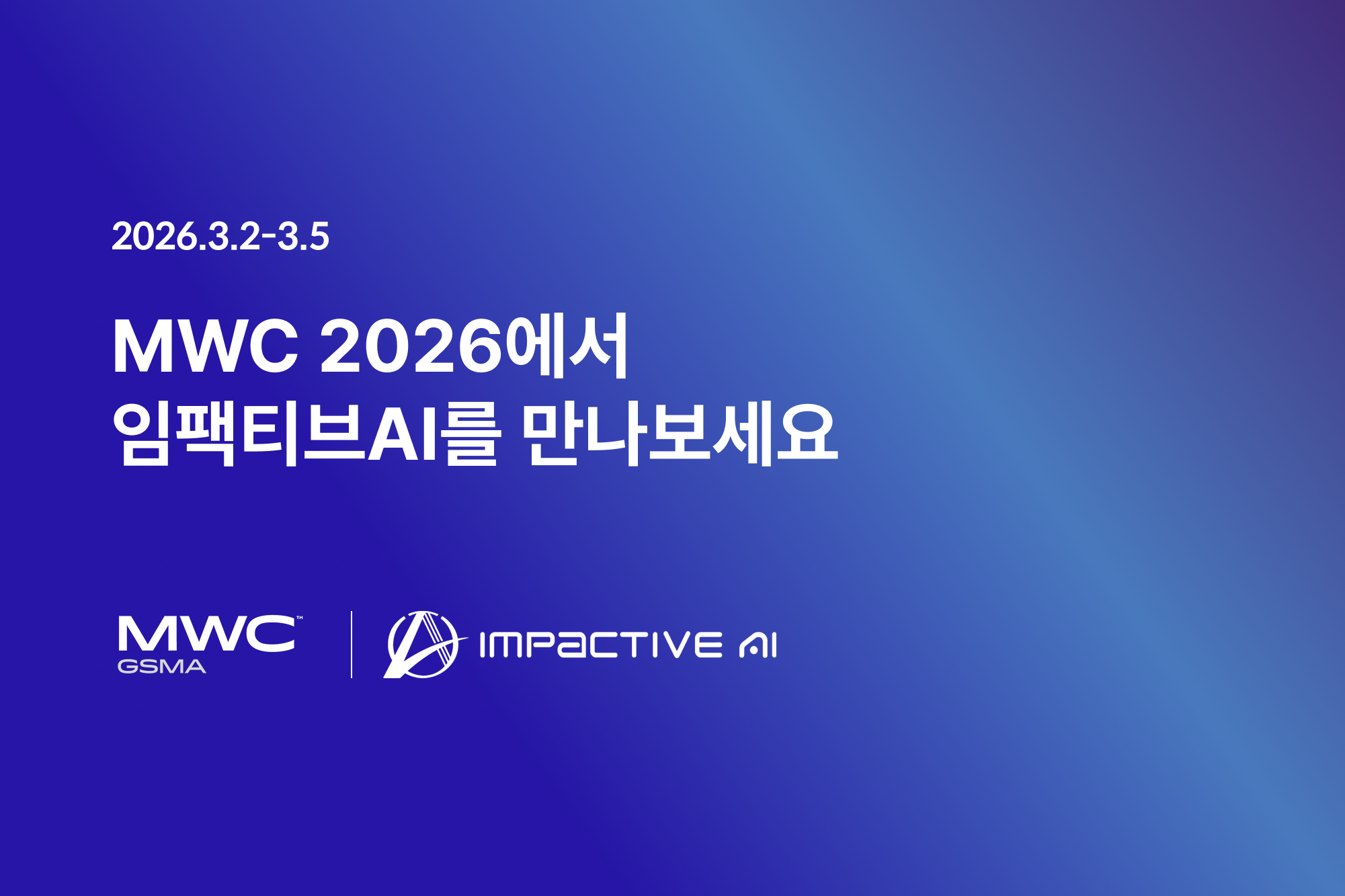 딥플로우 도입, 기술 협력, PoC 논의 등 MWC 2026 현장에서 임팩티브AI와 미팅을 계획하고 계시다면, 지금 미리 예약해주세요. 기다리지 않고 보다 깊이 있는 논의를 진행하실 수 있도록 사전에 준비하겠습니다.